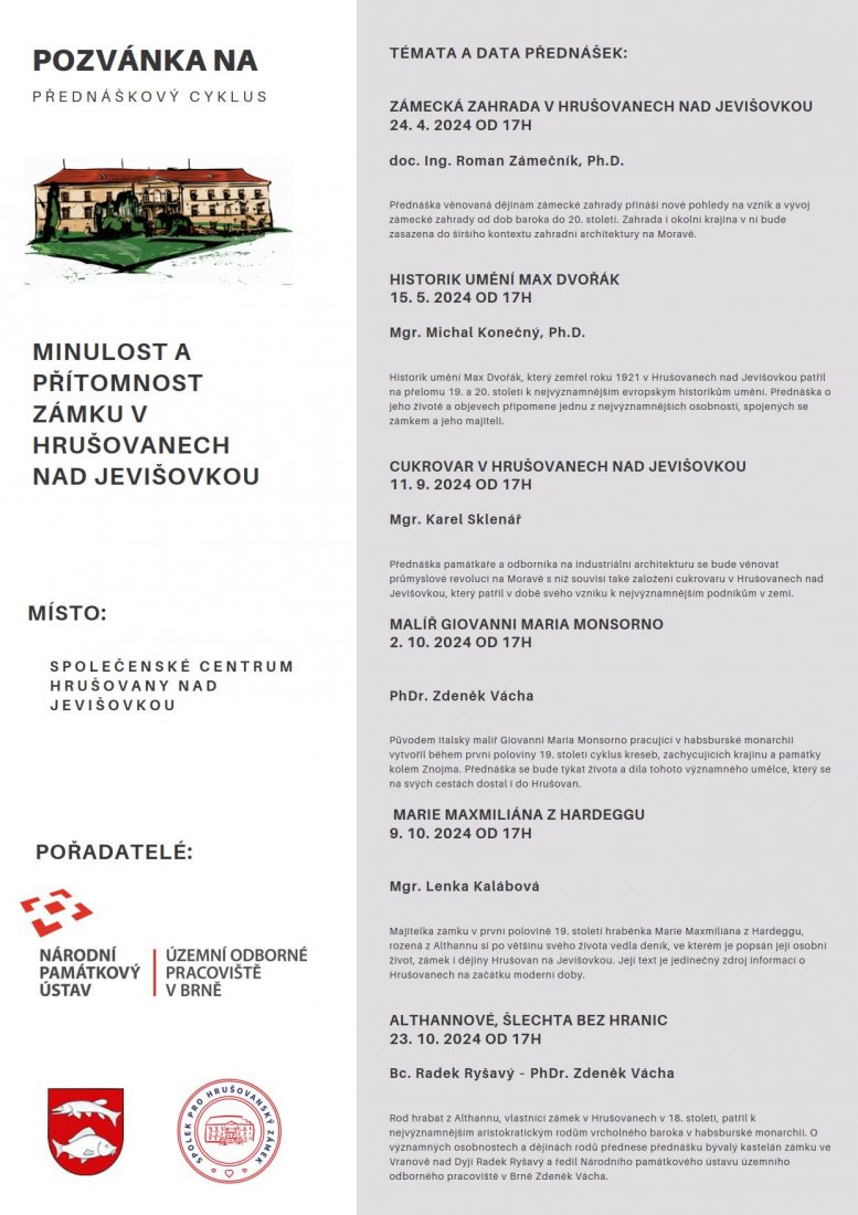 V rámci přednáškového cyklu "Minulost a přítomnost zámku v Hrušovanech nad Jevišovkou" se první říjnovou středu můžete seznámit s malířem jménem Giovanni Maria Monsorno. Původem Ital pracující v Habsburské monarchii vytvořil během první poloviny 19. století cyklus kreseb zachycujících krajinu a památky v okolí Znojma. Přednáška PhDr. Zdeňka Váchy se bude týkat života i díla tohoto významného umělce, který se na svých cestách dostal i do Hrušovan nad Jevišovkou. Začíná v 17 hod. v Hrušovanském Společenském centru.