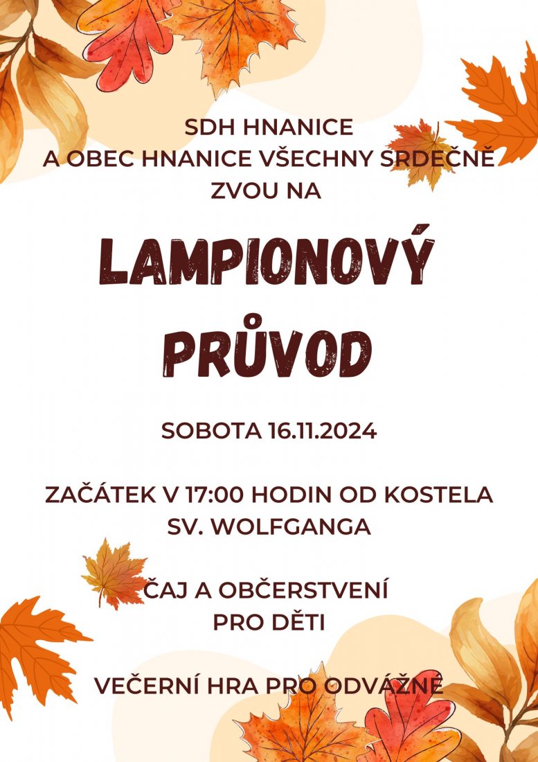 V 17 hod. vyrazí od hnanického kostela sv. Wolfganga lampionový průvod a nebojácné děti si mohou vyzkoušet zvou odvahu.