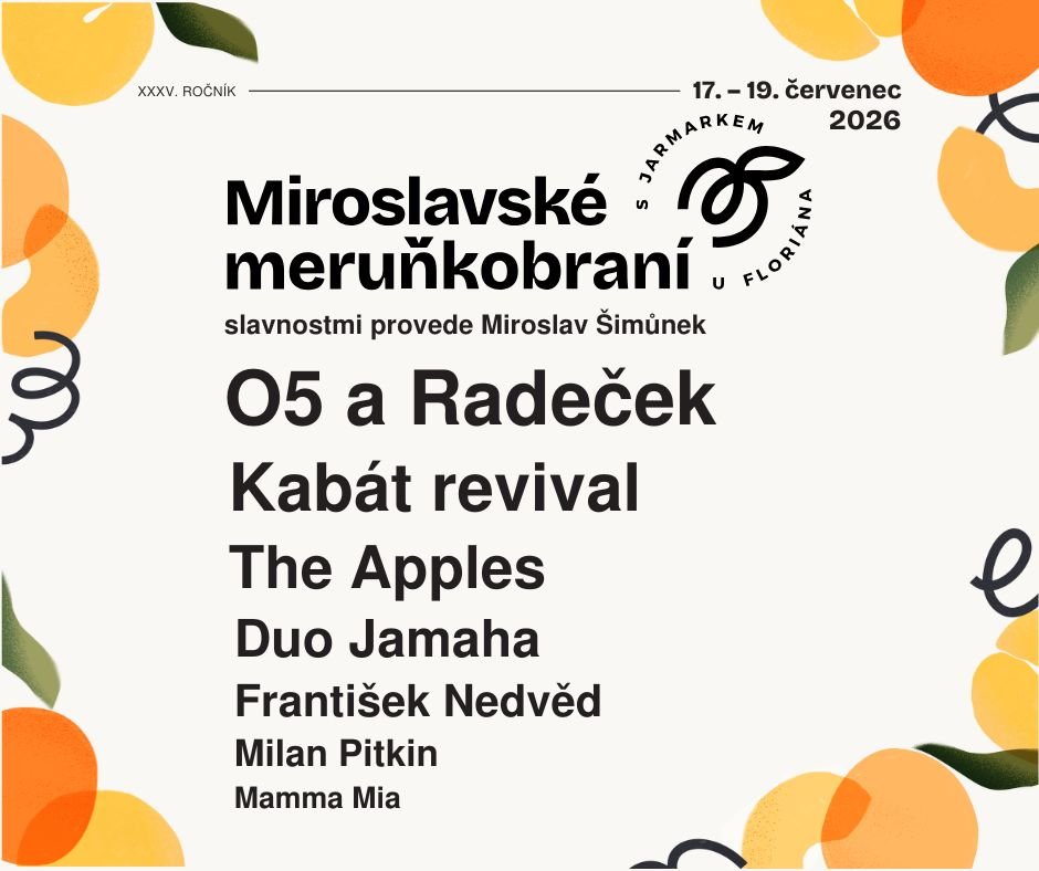 Třetí víkend v červenci se koná již 35. ročník největší kulturní akce města Miroslav. Návštěvníci se mohou těšit na tradiční program, ve kterém nechybí hudba, soutěž o knedlíkového krále, dobrá nálada a krásné prostředí zámeckého parku. Ochutnávání meruňkovice i vína, tradiční trh s ukázkami lidových řemesel, průvod v dobových kostýmech i historická bitva, stanové vojenské ležení či ukázka sokolnictví. A k tomu všemu ještě program speciálně pro děti, prohlídky Miroslavského zámku, hasičské závody, spanilá jízda traktorových veteránů, turistický vláček i traktor-vláček, slet ultralehkých letadel, módní přehlídka, koncerty a večer ohňostroj.