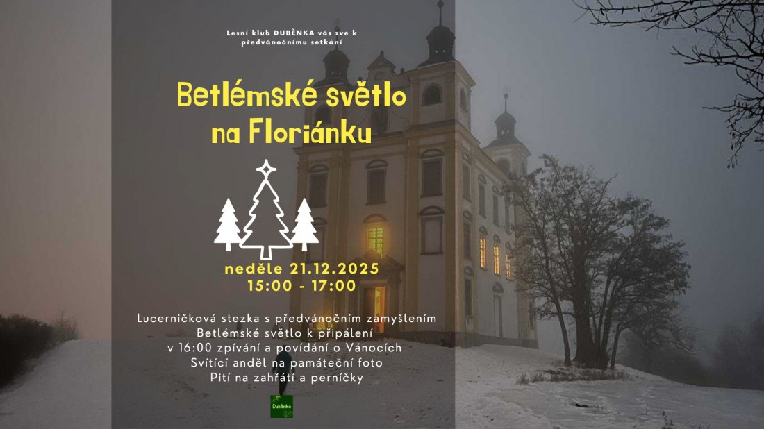 U příležitosti příjezdu Betlémského světla do Moravského Krumlova bude v neděli 21. 12. 2025 mimořádně otevřena barokní poutní kaple sv. Floriána na vyhlídkovém místě nad městem (od 15 do 17 hod.). Připraveno zde bude pro zájemce Betlémské světlo, které si může každý ve své lucerně odnést domů, lucerničková stezka a od 16 hod. i společné zpívání a povídání o Vánočních svátcích.