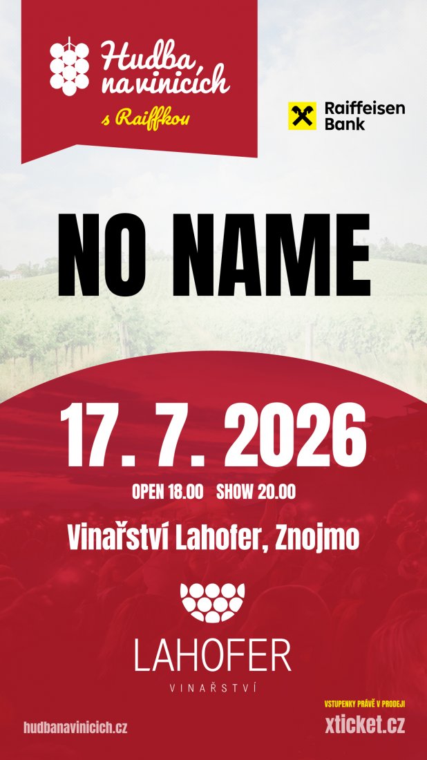 Hudba na vinicích je originální letní festival současné populární hudby, který spojuje hudbu a víno v jedinečném prostředí. Přímo uprostřed vinic, ve vyhlášených jihomoravských vinařstvích, se od června do srpna koná seriál open-air koncertů domácích hudebních špiček. Na Znojemsku je festivalovým centrem Vinařství LAHOFER se svým novým a architektonicky oceňovaným sídlem v Dobšicích u Znojma. Ročník 2026 sem přinese mimo jiné koncert známé slovenské kapely NO NAME. Areál vinařství se otevře v 18 hod. a nabídne kromě skvělého vína i dostatek dalšího občerstvení včetně jídla. Koncert pak začne ve 20 hod. a potrvá do 22 hod.