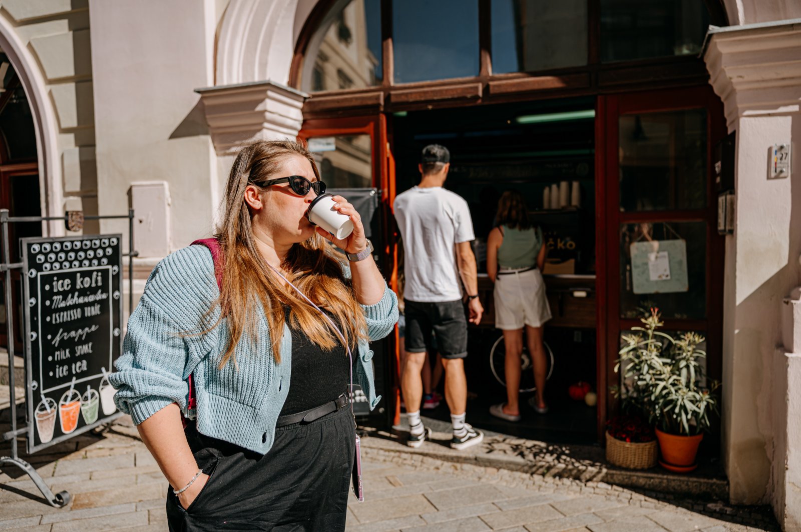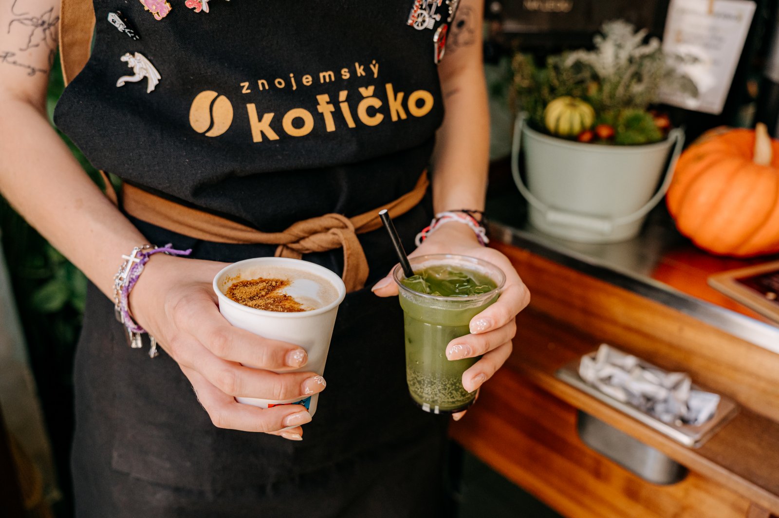 Nabídka je široká a svou vysněnou kávu tu najdou i ti, kteří rádi experimentují s chutěmi. Kromě těch klasických horkých si tu vychutnáte i osvěžující varianty jako je Ice Kofíčko, Frappé nebo Espresso Tonic, které skvěle osvěží ve slunečném jihomoravském létě. Velký prostor v nabídce má také oblíbená matcha – ať už horká nebo ledová. V chladnějším období se můžete těšit na voňavé zimní speciality, jako je Perníčkové latté, Zázvorové latté nebo Chai latté.