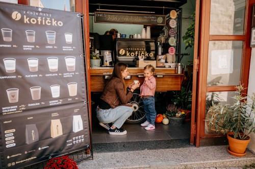 Vůně čerstvé kávy, dobrá nálada a kousek gurmánské pohody se v historickém centru Znojma potkávají na jednom místě: v Obrokové ulici hned naproti Radniční věži. V přízemní otevřené arkádě starobylého měšťanského domu tuto jedinečnou kombinaci nabízí "Znojemský Kofíčko" – jediná pojízdná kavárna ve Znojmě.